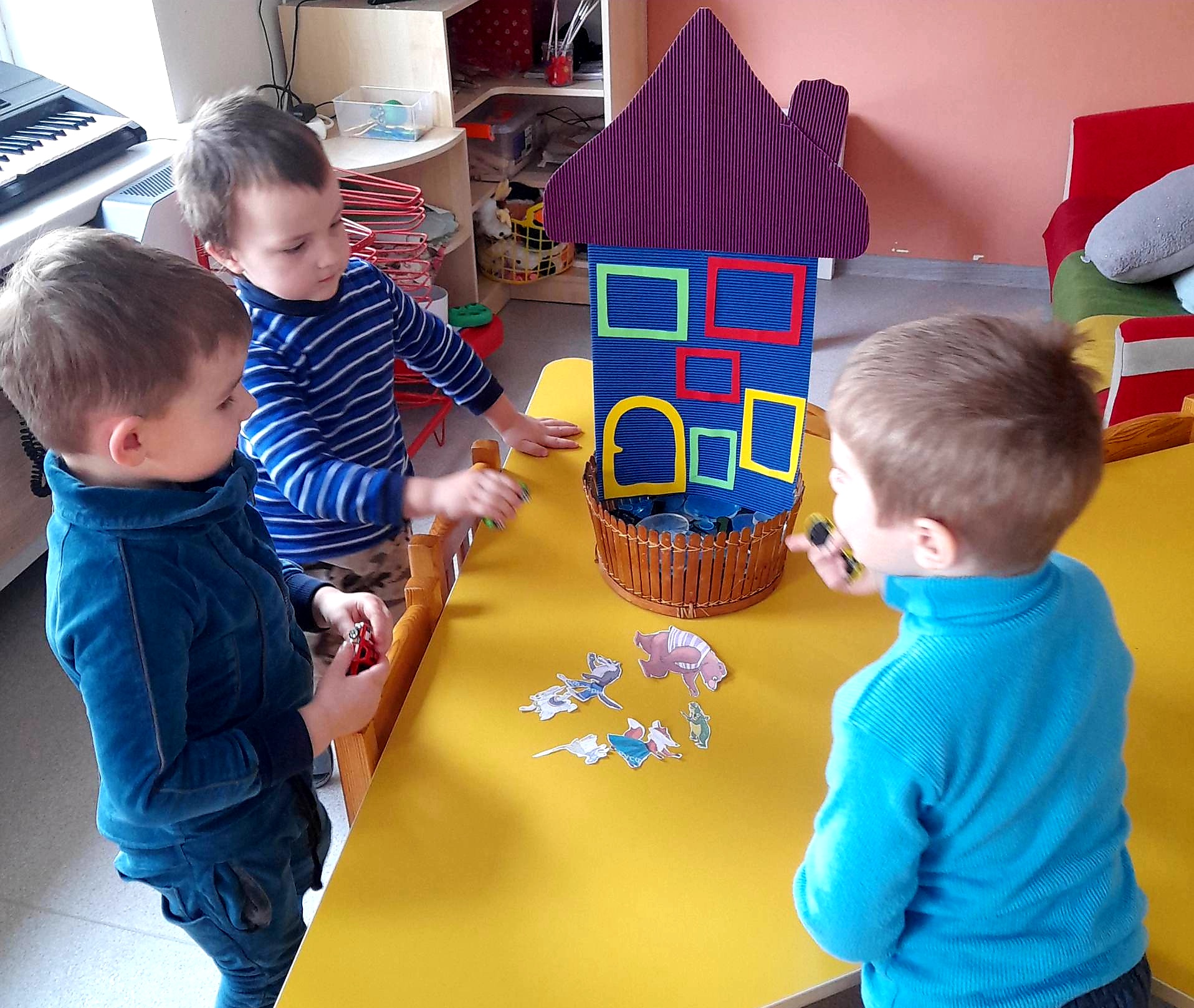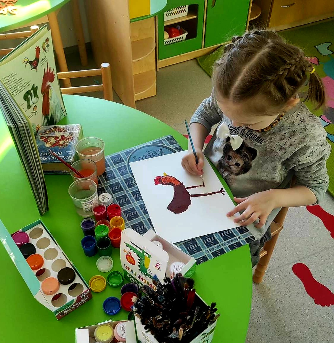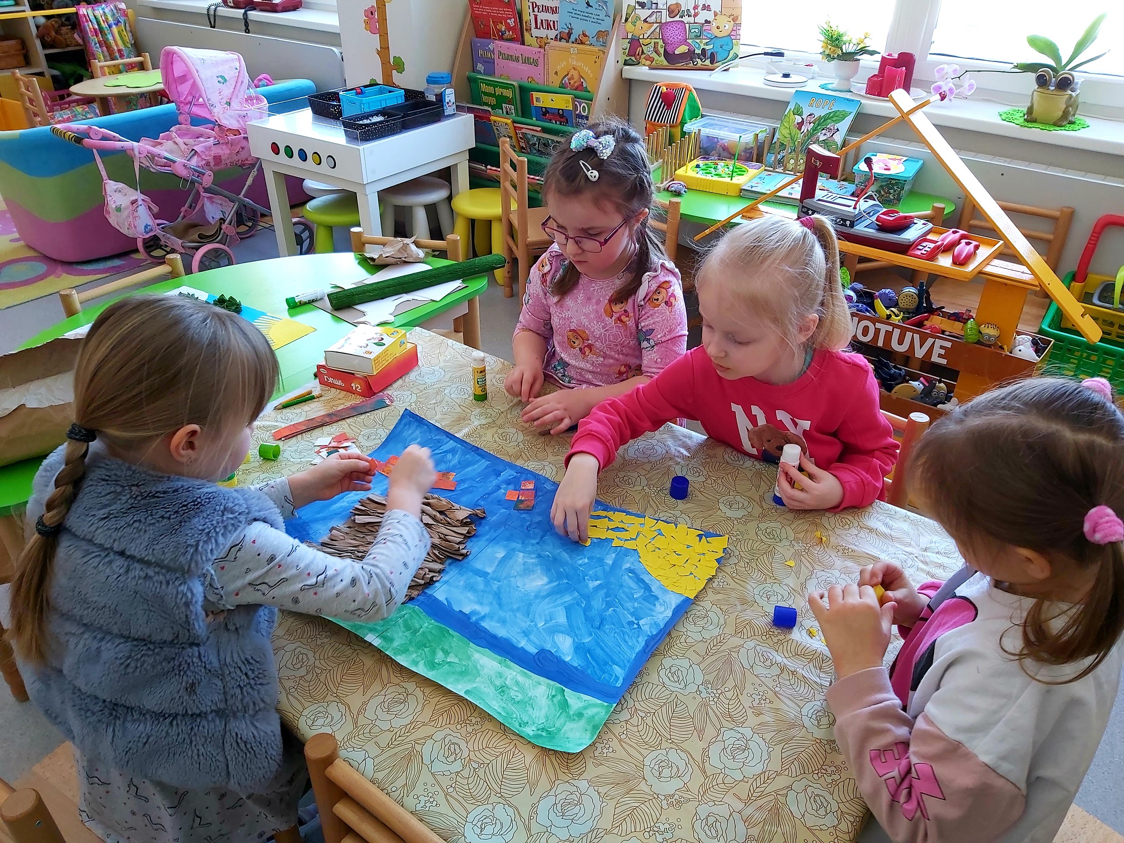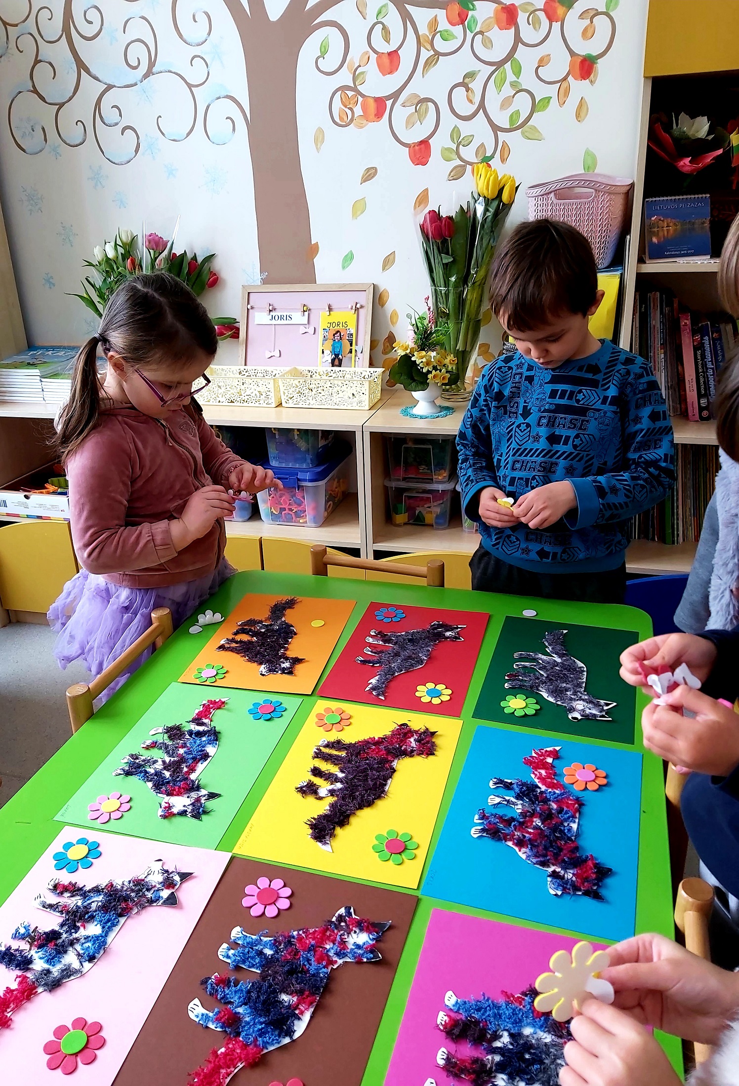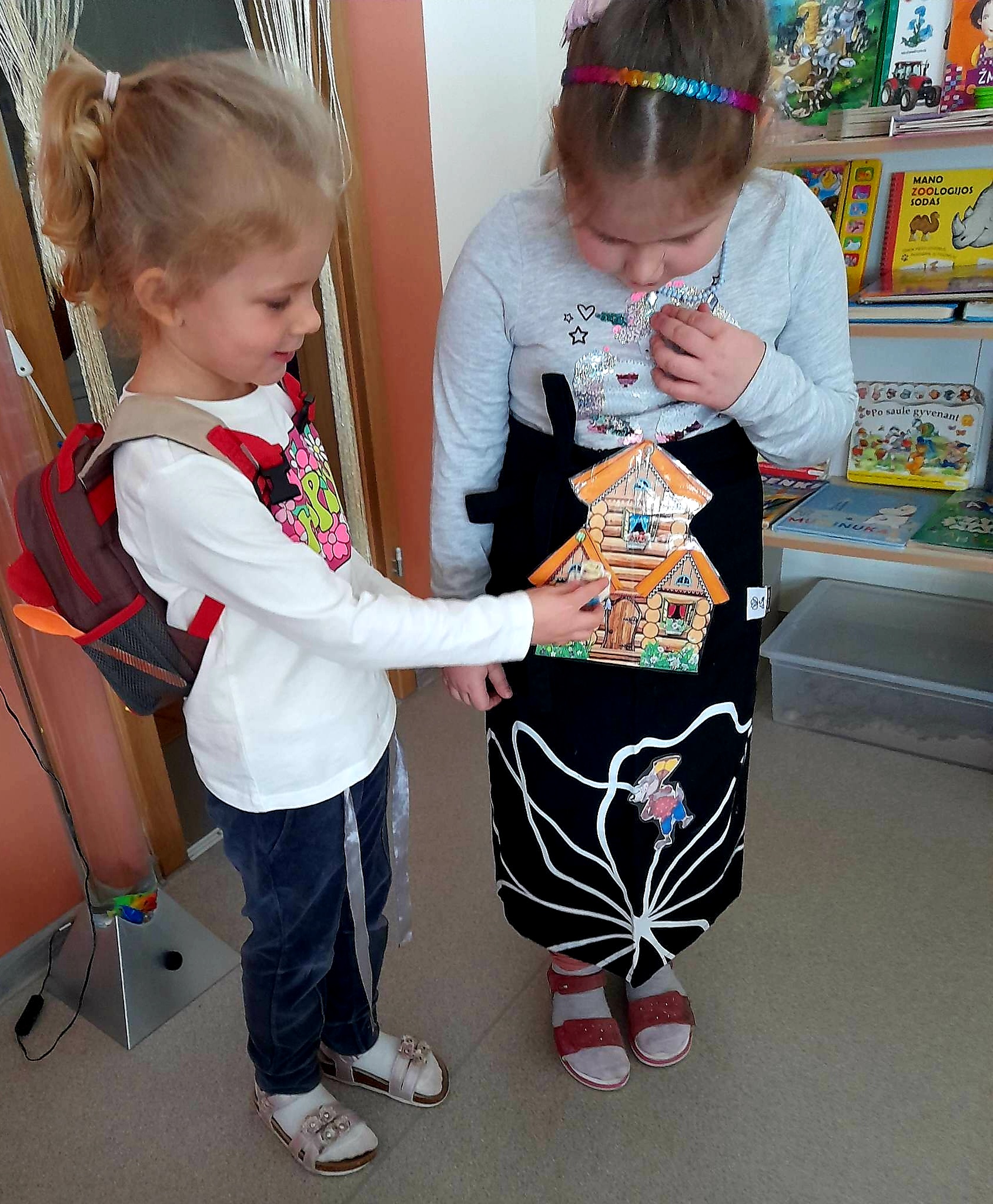 Mokytoja Jolita Selilienė su „Ančiukų“ grupės vaikais pasirinko pasaką „Trobelytė“. Ją pristatė, sekė įvariais būdais, naudojo mąstymo žemėlapių metodą, aptarė pasakos veikėjų nuotaikas, charakterius, skirtingais balsais mėgdžiojo personažų dialogus. Mokytoja Tatjana Ralovecienė ir „Drugelių“ grupės vaikai smagiai leido laiką vaidindami ir žaisdami pasakos „Du gaideliai“ personažais. Vaikams buvo pagamintos karūnėlės ir dekoracijos. Tiek grupėje, tiek salėje skambėjo linksmas vaikų klegesys. Mokytojos Jolanta Verbilienė ir Nijolė Tracevičienė šmaikščiai ir linksmai vaikams pristatė pasakas: „Pralinksminta bajorė“, „Katinėlis ir gaidelis“. Vaikai karpė, piešė ir klijavo pasakų iliustracijas, klausėsi gyvai skaitomų pasakų, atsakinėjo į klausimus, sprendė problemas iškilusias pasakos veikėjams, aptarinėjo personažus, jų ypatingus bruožus. Žavėjosi lietuvių kalbos grožiu, jos vaizdingumu. Mokytoja Jūratė Černiauskienė pasirinko lietuvių liaudies pasaką be galo „Katinėlis molio“, kurią sekė tiek „Ančiukų“, tiek „Saulės zuikučių“ grupės vaikams. Naudodami akvarelę vaikai tapė molio katinėlio portretą. “Saulės zuikučių“ grupės vaikai ir mokytoja Agnė Rudytė pasirinko pasaką „Vilkas ir septyni ožiukai“. Vaikams buvo pristatytos pirštukų teatro nertos lėlytės, klausėsi ne tik skaitomos, bet ir aktoriaus sekamos pasakos įrašo. Kiekvienas vaikas galėjo prisidėti kuriant pasakos iliustraciją. Akvarele tapė foną, iš antrinių žaliavų gamino ožkelės namelį – klijavo sienas, dengė stogą, sodino medžius, iš paveikslėlių kirpo veikėjus, o karpytais siūlais aplikavo vilką pilką ir danguje saulytę.