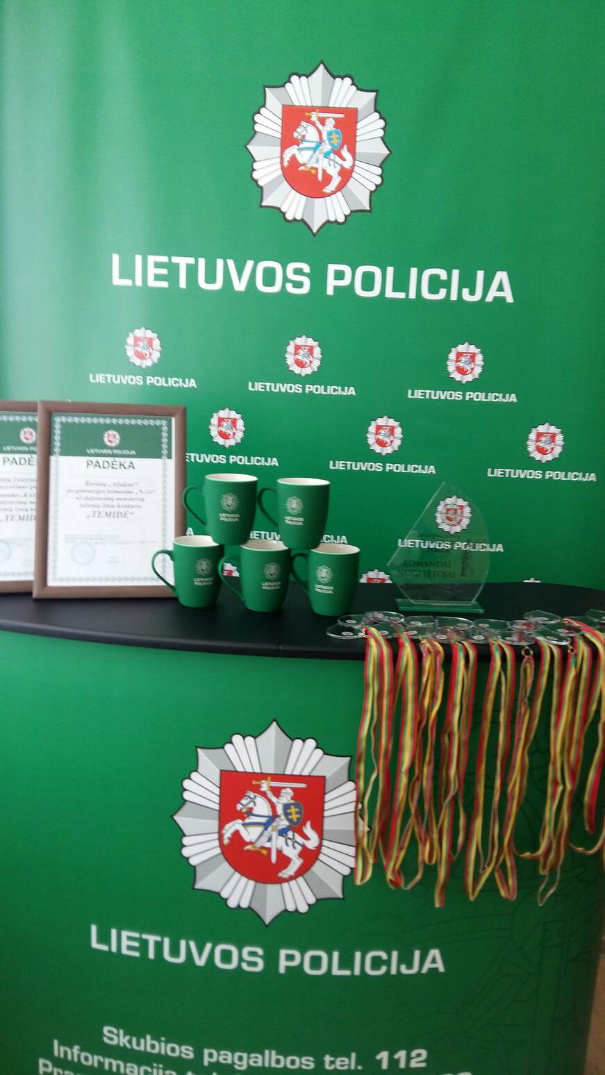 Širvintų rajono policijos komisariato viršininkas Sigitas Urbonas visoms komandoms įteikė atminimo medalius, padėkas už aktyvų dalyvavimą mokinių teisinių žinių konkurse „Temidė“, na o komandai nugalėtojai atiteko pereinamasis prizas „Temidės“