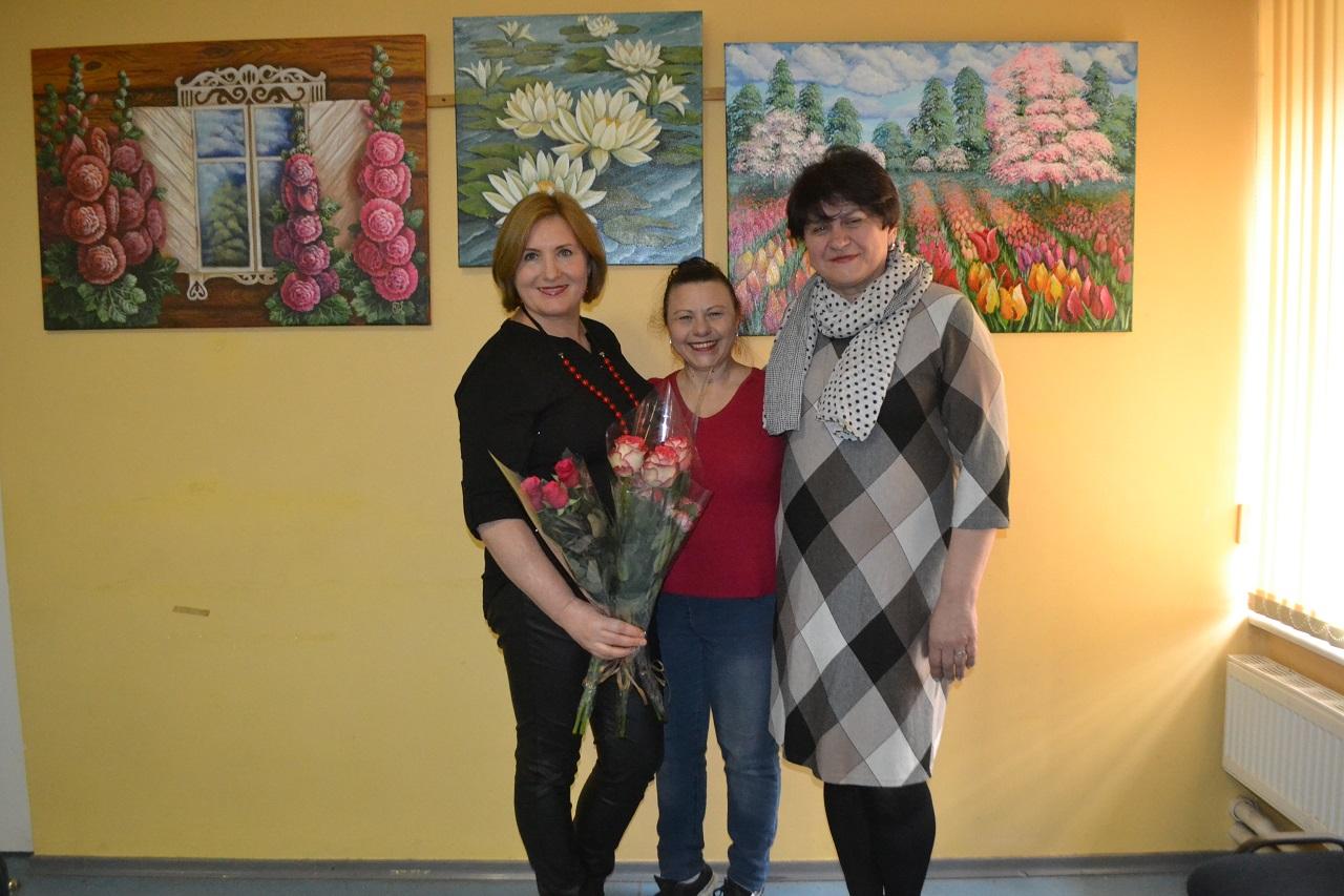 Čia pat svečiai rašė Vidai linkėjimus albume, vaišinosi arbata ir saldumynais, apžiūrėjo parodą, fotografavosi.