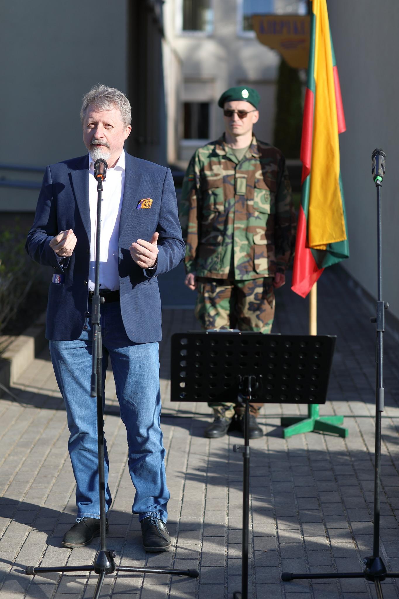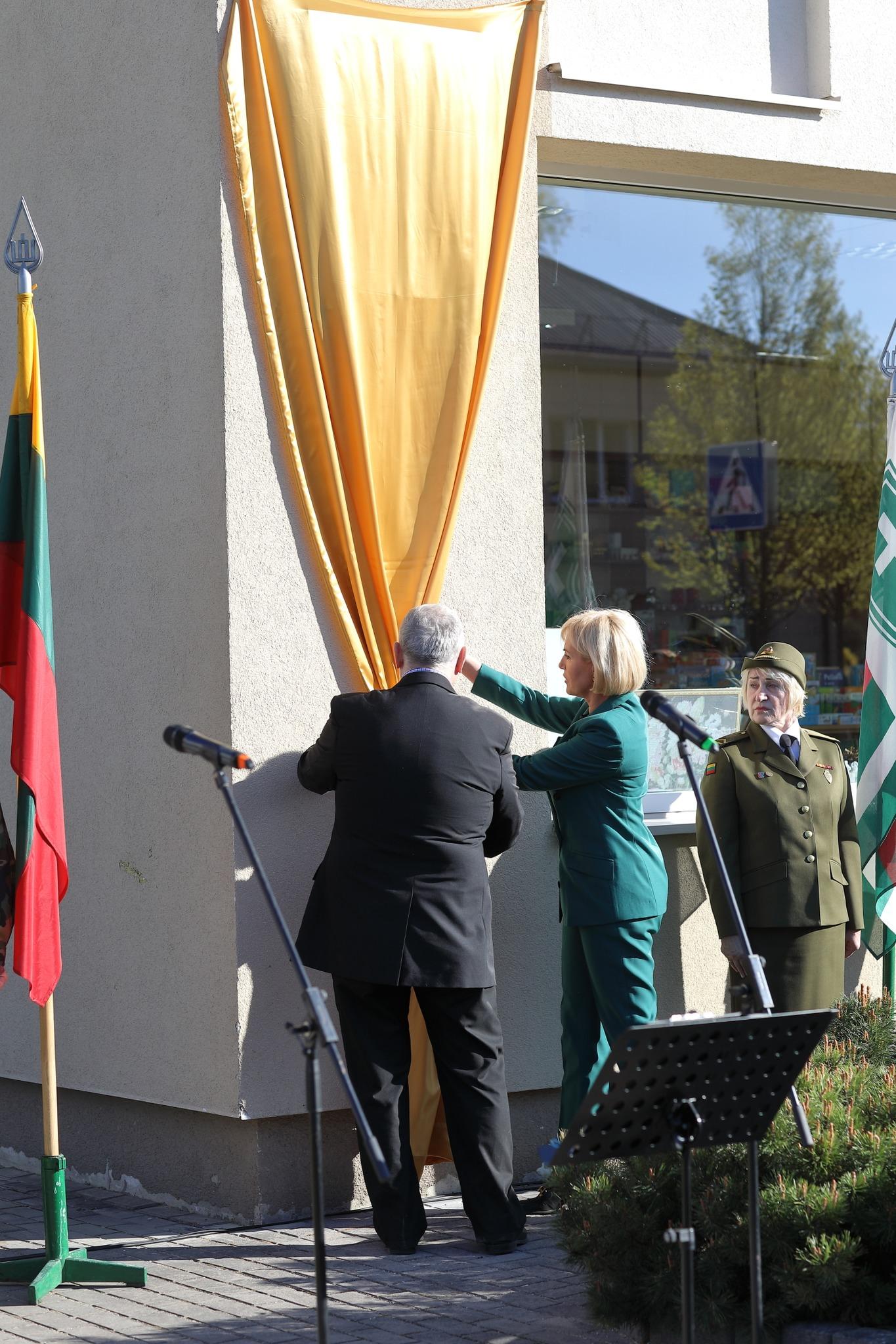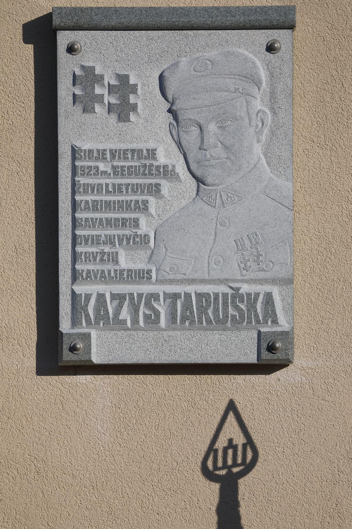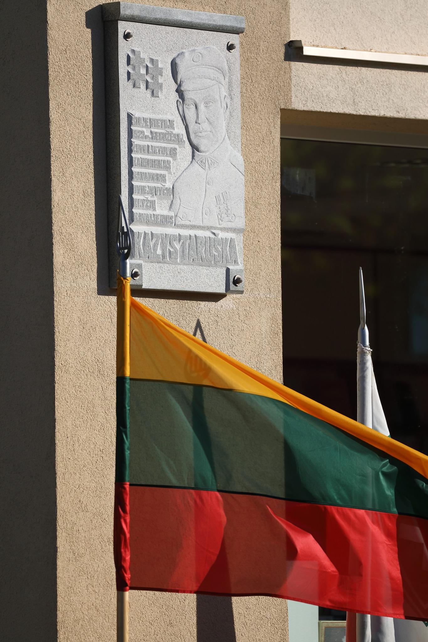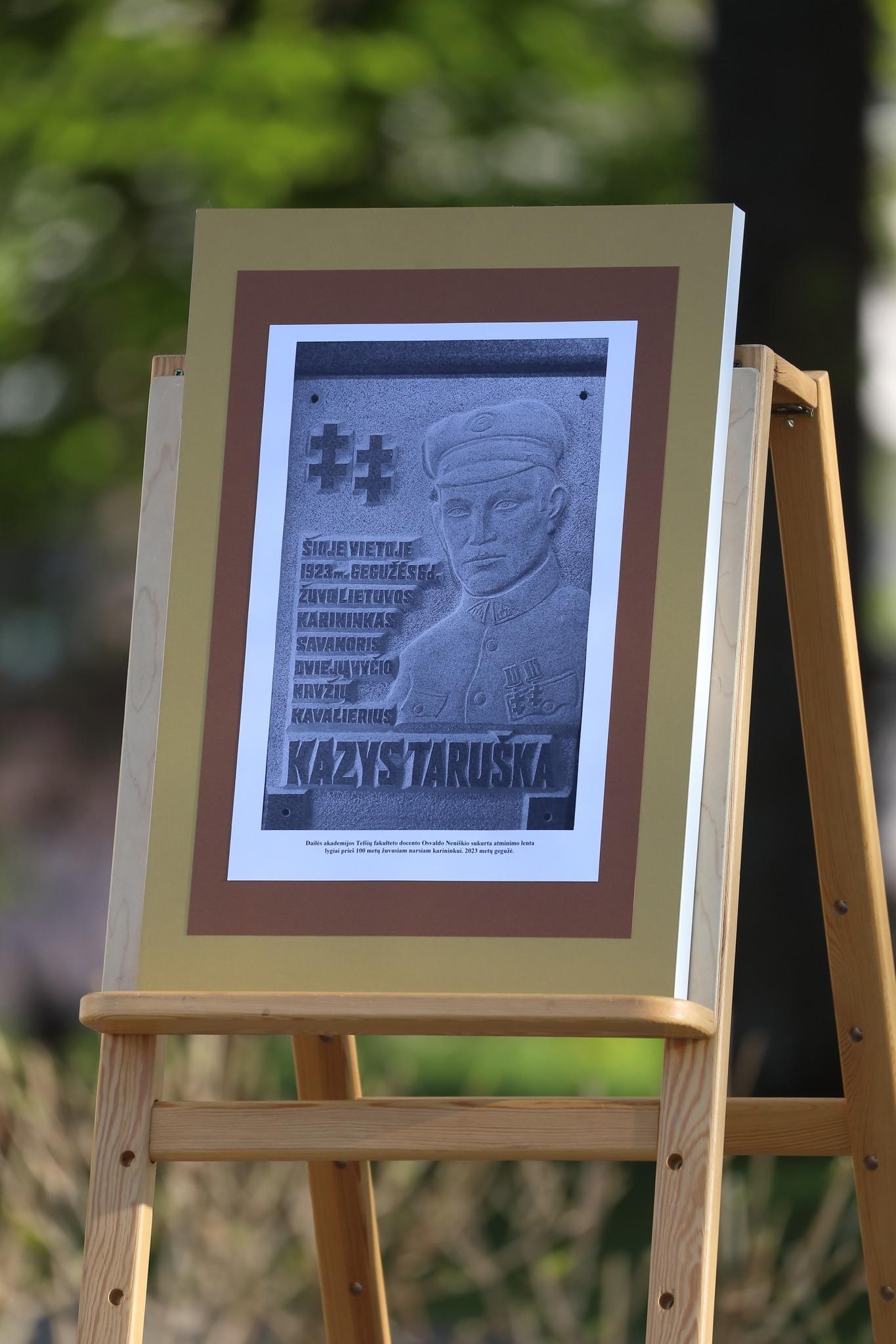 / VIRGINIJUS SARPAUSKAS / 2023m. gegužės 6d. šeštadienį prie Širvintų knygyno buvo atidengta atminimo lenta lygiai prieš 100 metų žuvusiam Širvintų partizanų vadui, dukart Vyties kavalieriui Kaziui Taruškai.