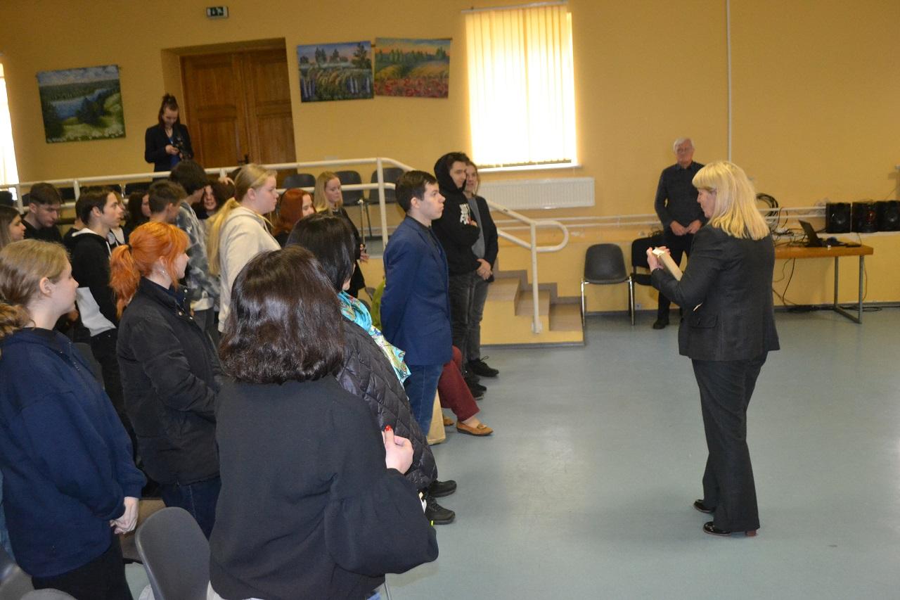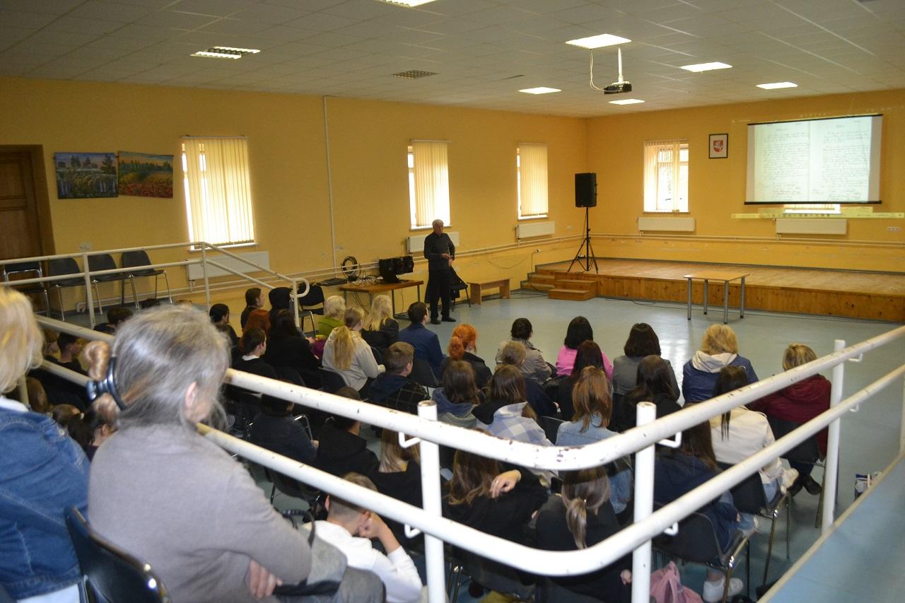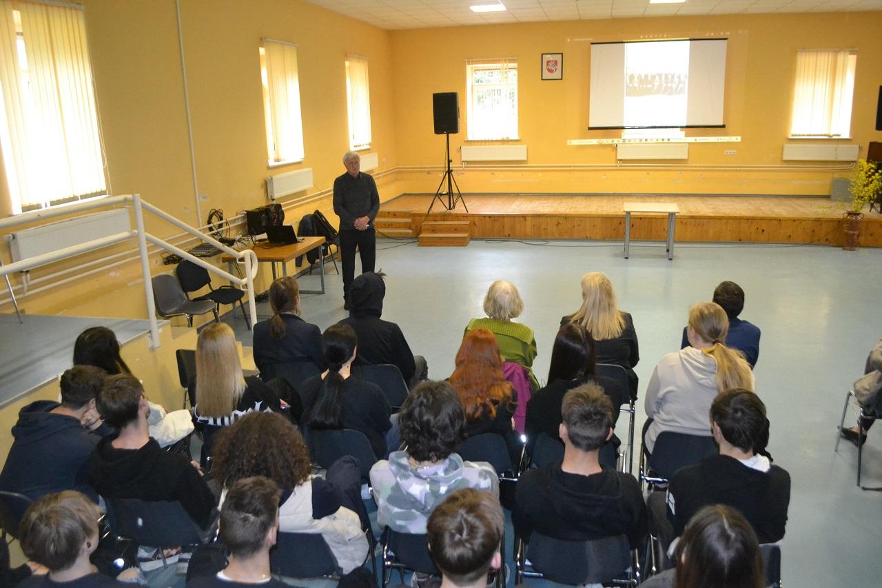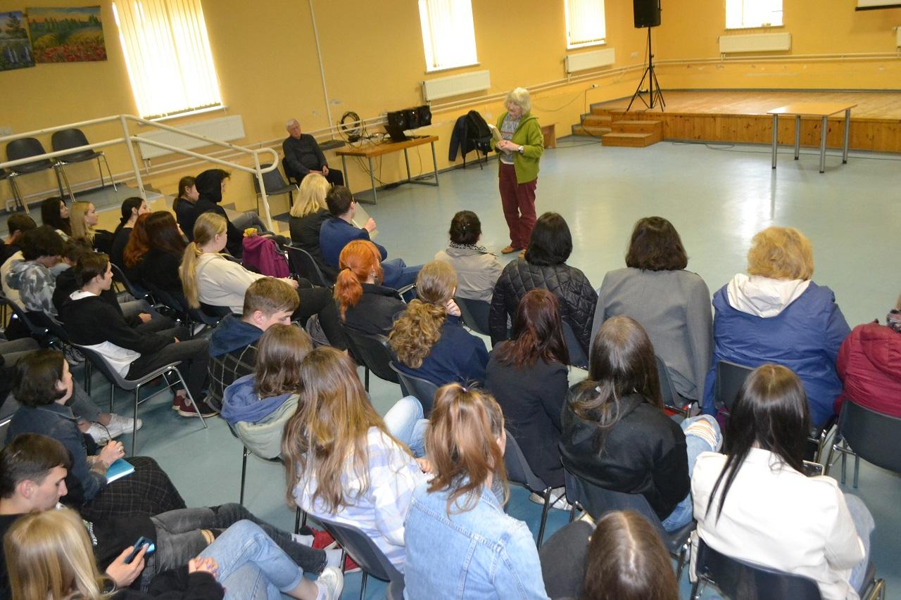 Svečius pasveikino Musninkų Alfonso Petrulio gimnazijos direktorė Palmira Kvietkauskienė ir pasidžiaugė gimnazistų galimybe pasiklausyti tikrų istorijų.