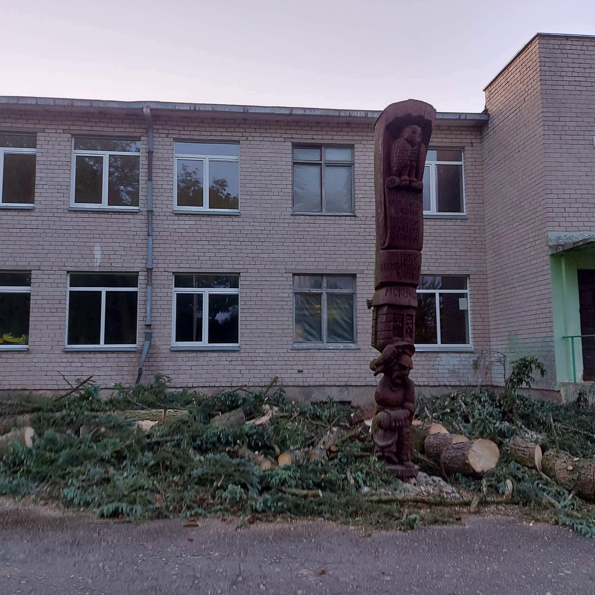 Įdomu, kuriam ar kuriems trukdė apie 50 metų prie mokyklos augusios eglės ir gluosnis, kažkada ten dirbusių mokytojų, direktorių ir mokinių pasodintas? Keistas jausmas!!! Kaip V. Krėvės skerdžiaus, pamačius nupjautą liepą! “Nei tu sodinai”, nei prižiūrėjai, ėmei lengva ranka ir nurėžei.