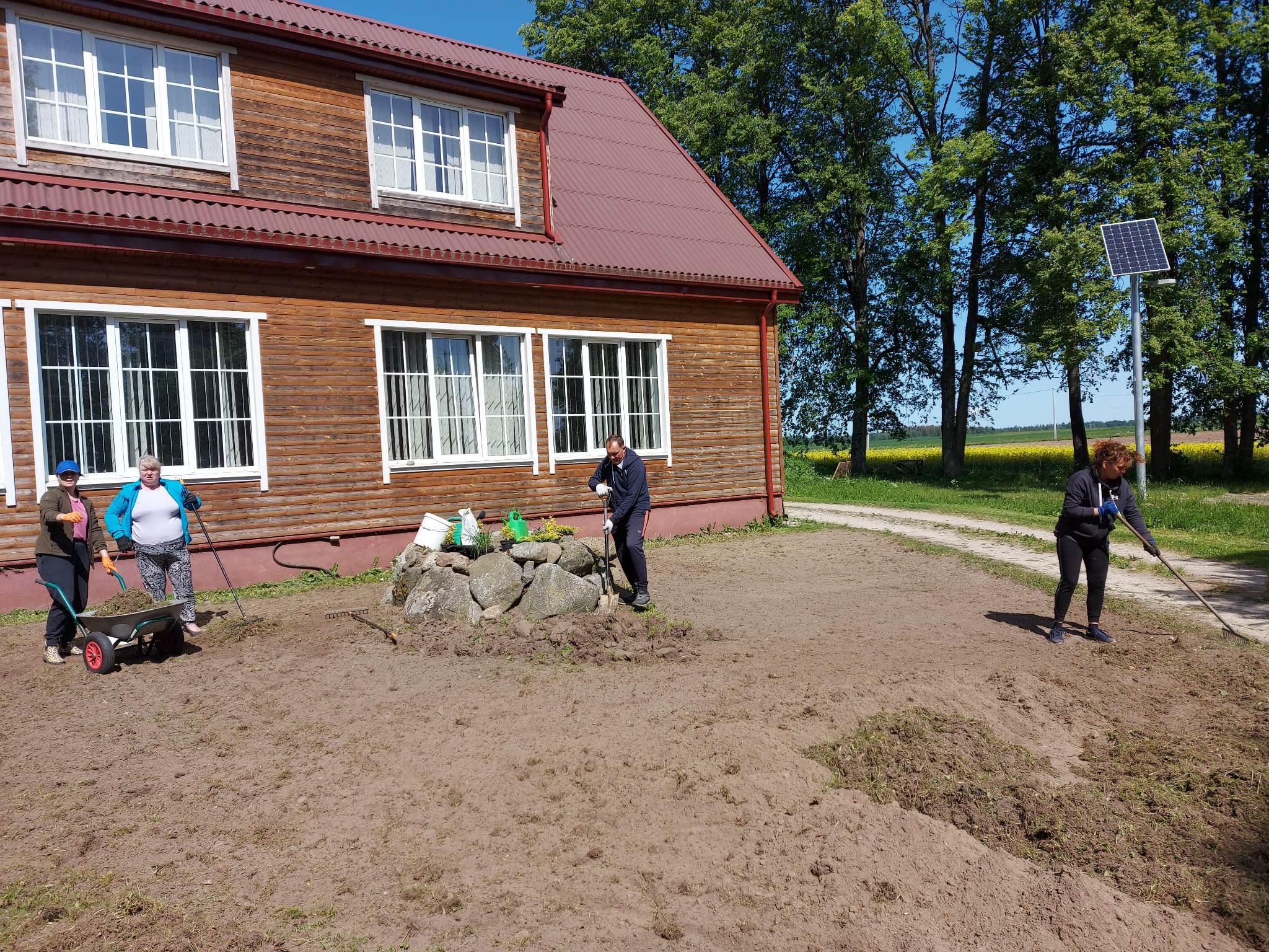Projekto metu įsigyta: vejos priežiūros technika – plaktukinė žoliapjovė; priekaba – nupjautos žolės, medžių lapų išvežimui; benzininė žoliapjovė – trimeris; benzininis lapų pūstuvas; 38 vnt. daugiamečiai žydintys krūmai ir augalai. Įgyvendinus projektą 92 arų viešojoje erdvėje šalia bendruomenės namų įrengtas daugiamečių augalų gėlynas, kuriame pasodinta 38 įvairūs augalai, sutvarkyta aplinka, nušienauta žolė.