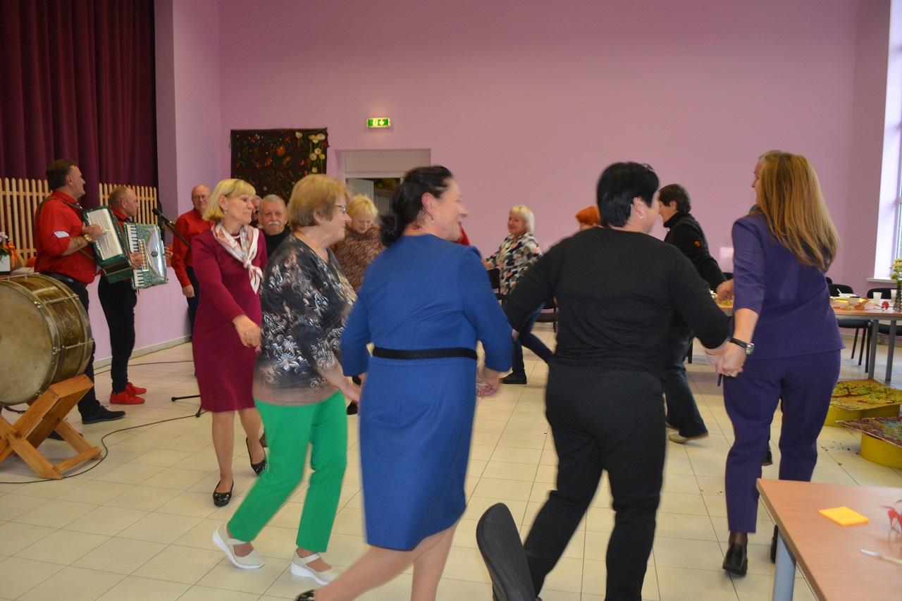 Svečiams neleido nuobodžiauti ir filialo vadovė Asta Amankavičienė. Ji buvo paruošusi nemažai smagių žaidimų, įtraukusių visus žiūrovus. Smagiausias žaidimas buvo „Atspėk dainą”, „Padainuok dainą apie gėles”, „Atspėk žodį”… Tai skambėjo dainos, tai virė aistros… Visiems labai patiko ir kūrybinė užduotis. Ant ilgos popieriaus juostos kiekvienas turėjo parašyti teksto eilutę. Bet negalėjo pažiūrėti, kas jau parašyta. Tuomet Asta perskaitė vietoje visų svečių sukurtą eilėraštį apie rudenį (jį išgirsite video įraše).