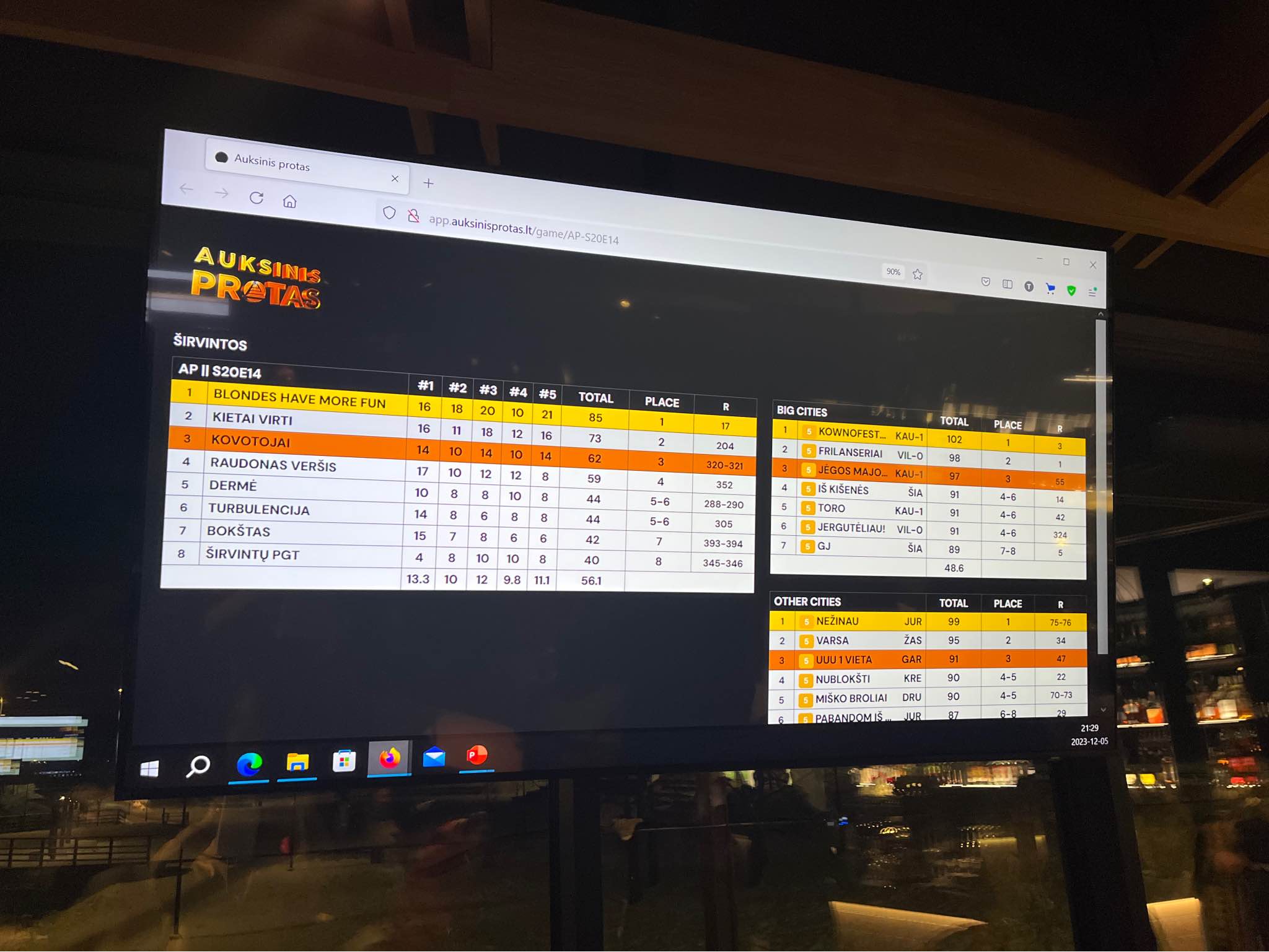 Žaidime tradiciškai nugalėjo BLONDES HAVE MORE FUN ir pasiėmė SLAPTO RĖMĖJO prizą. Antri tą vakarą buvo KIETAI VIRTI, o trečiąja vieta ir Arvydas Dačka kašiku džiaugėsi KOVOTOJAI.