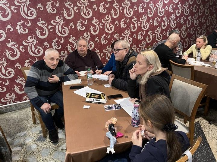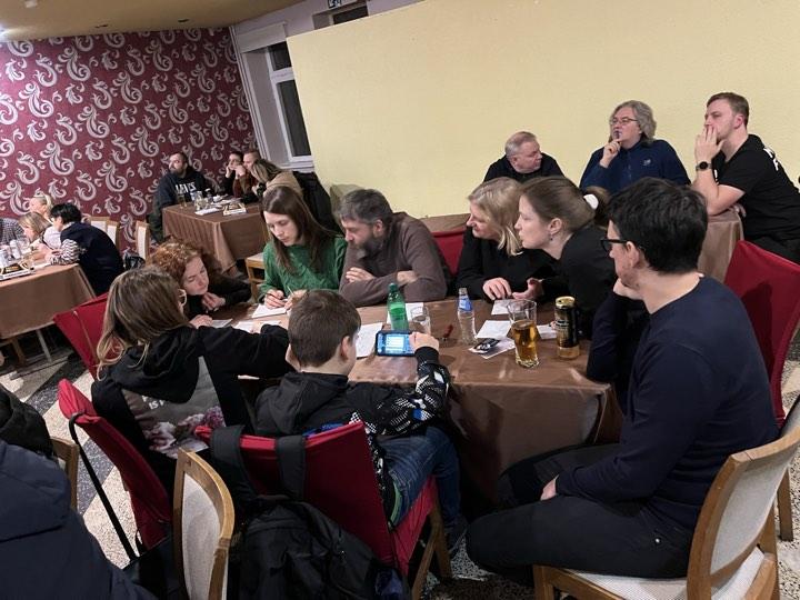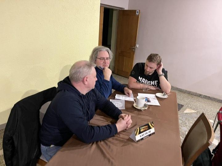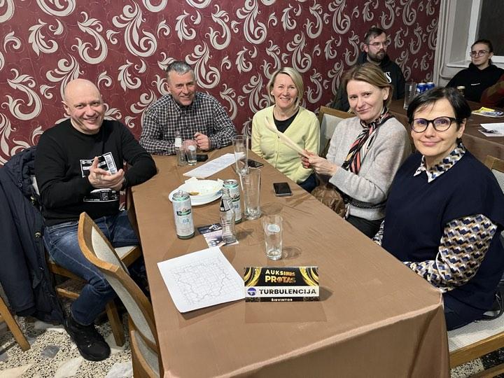 Vos nepamiršau rėmėjų prizų, kurių tą vakarą buvo itin gausu. Briedžio miške universalus drabužis atiteko KIETAI VIRTIEMS, Dermės dovana džiaugėsi pagaliau vėl puikiai žaidęs BOKŠTAS, Slapto rėmėjo prizas atsidūrė pas KOVOTOJUS, Dabužynės bityno dovana seilę varvino BOKŠTUI, Arūno Kerpiškio uogų ūkio naujuoju prizu džiaugėsi RAUDONAS VERŠIS, Arvydo Dačkos originalūs ir praktiški darbai stebino TURNBULENCIJĄ, Draustuko dovanomis džiaugėsi KIETAI VIRTI ir KOVOTOJAI. Čia dar neminint smulkių suvenyrų „porelių” mylėtojams 🙂 Tai štai kokie reikalai vyko šį antradienį. Neabejoju, kad po savaitės bus ne mažiau įdomu, nes, tikėtina, kad prisijungs dar viena nauja komanda 🙂 Iki susitikimo ten pat ir tuo pačiu metu!