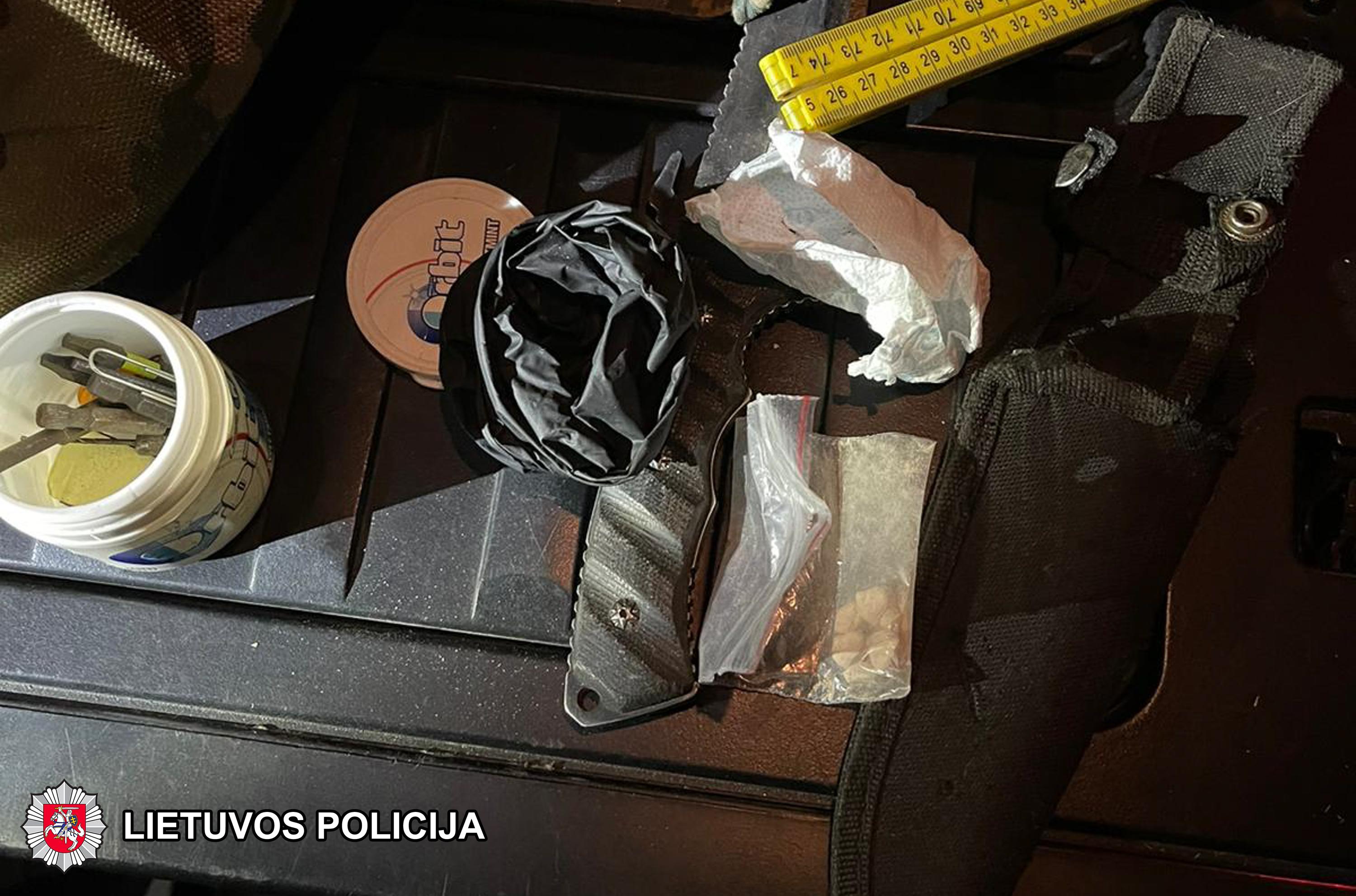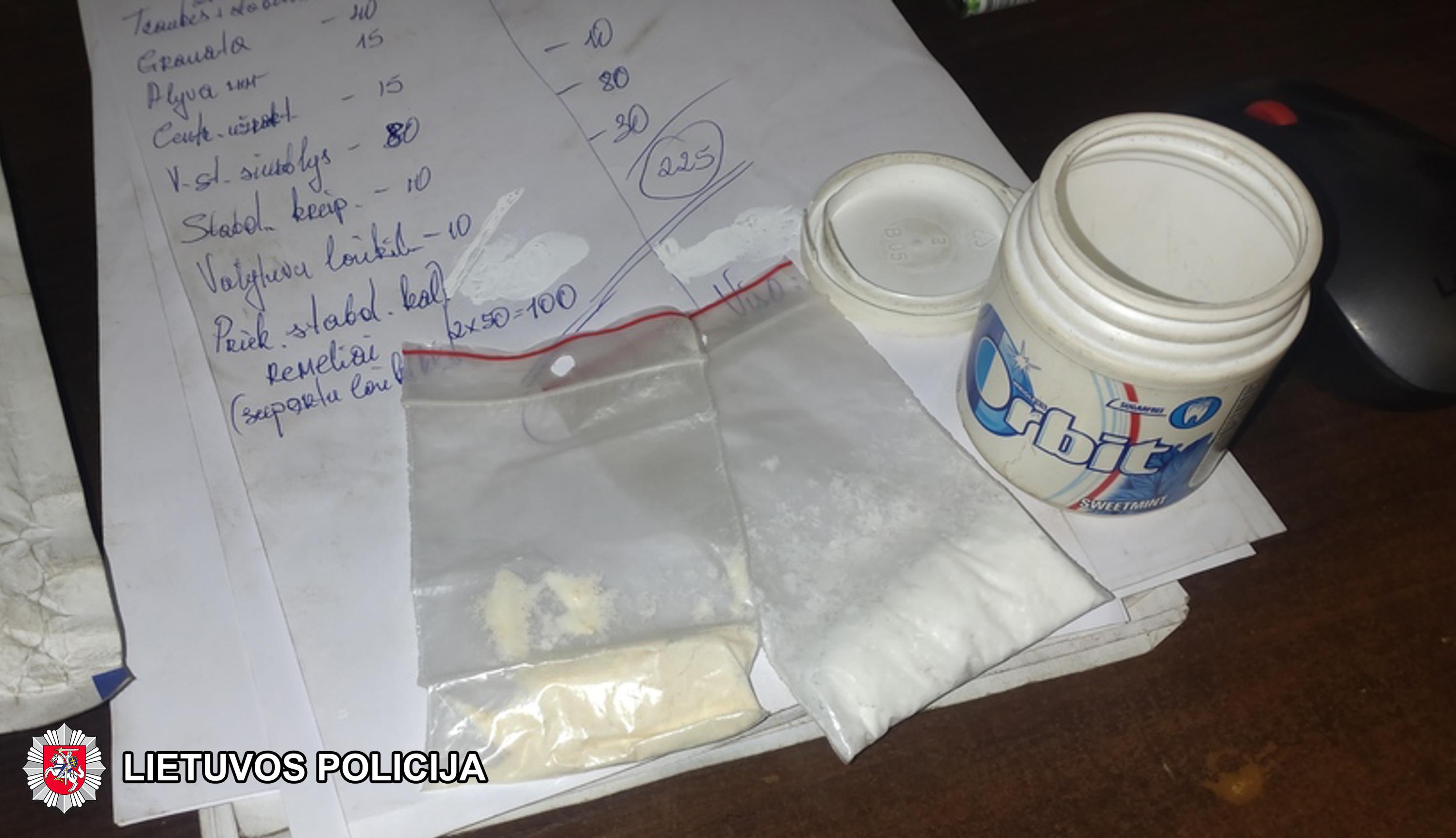 Kratos pas sulaikytąjį dėl neteisėto narkotinių medžiagų platinimo metu buvo rasta ir paimta apie 1 kg, kaip įtariama, psichotropinės medžiagos – amfetamino, svarstyklės, priemonės dalinti, fasuoti narkotikus, pneumatiniai šautuvai, šoviniai ir kiti ikiteisminiam tyrimui reikšmingi daiktai.