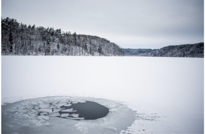 • Ypač atsargiems reikia būti prie kranto, nes čia ledas silpnesnis ir jame gali būti įtrūkimų.
