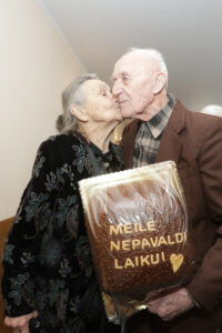 Susirinko poros, kurių bendras gyvenimas skaičiuojamas ne metais, o dešimtmečiais. Elena ir Jonas Jureliai, kartu jau 68-erius metus, atsinešė savo santuokos liudijimą – trapų dokumentą, saugantį jaunystės pažadą. Jų akyse spindėjo ramybė, kurią gali suteikti tik ilgas buvimas kartu.