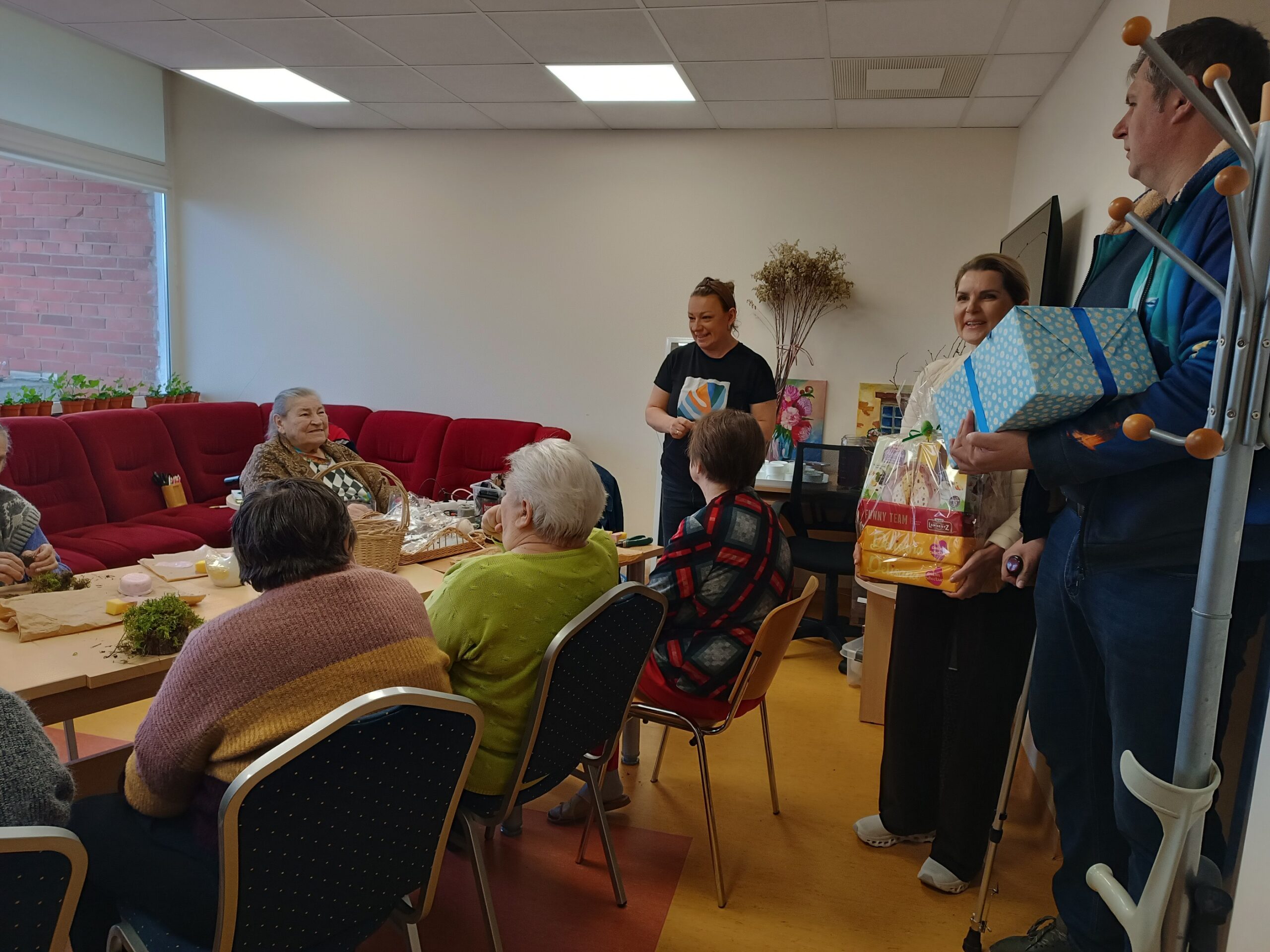 Apsilankymų metu senjorus užtikome jaukiai įsitraukusius į šventinį pasiruošimą – jie kruopščiai rišo verbas, kūrė įvairius Velykinius papuošimus, dalijosi idėjomis ir džiaugėsi kūrybos procesu. Ši prasminga veikla pripildė erdves gyvybės ir šventinio šurmulio, o kiekvienas sukurtas darbelis liudijo ne tik rankų darbštumą, bet ir širdies šilumą.